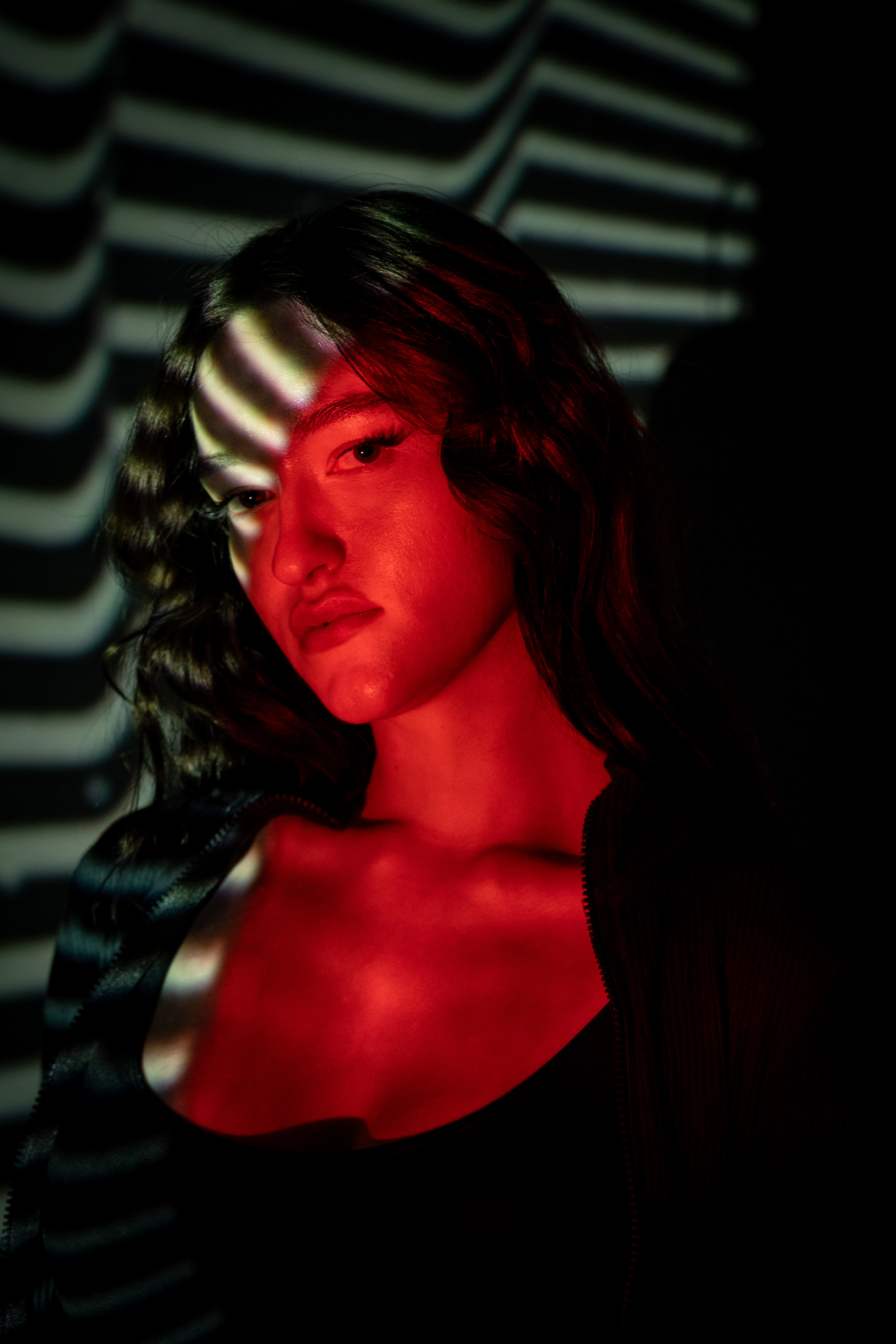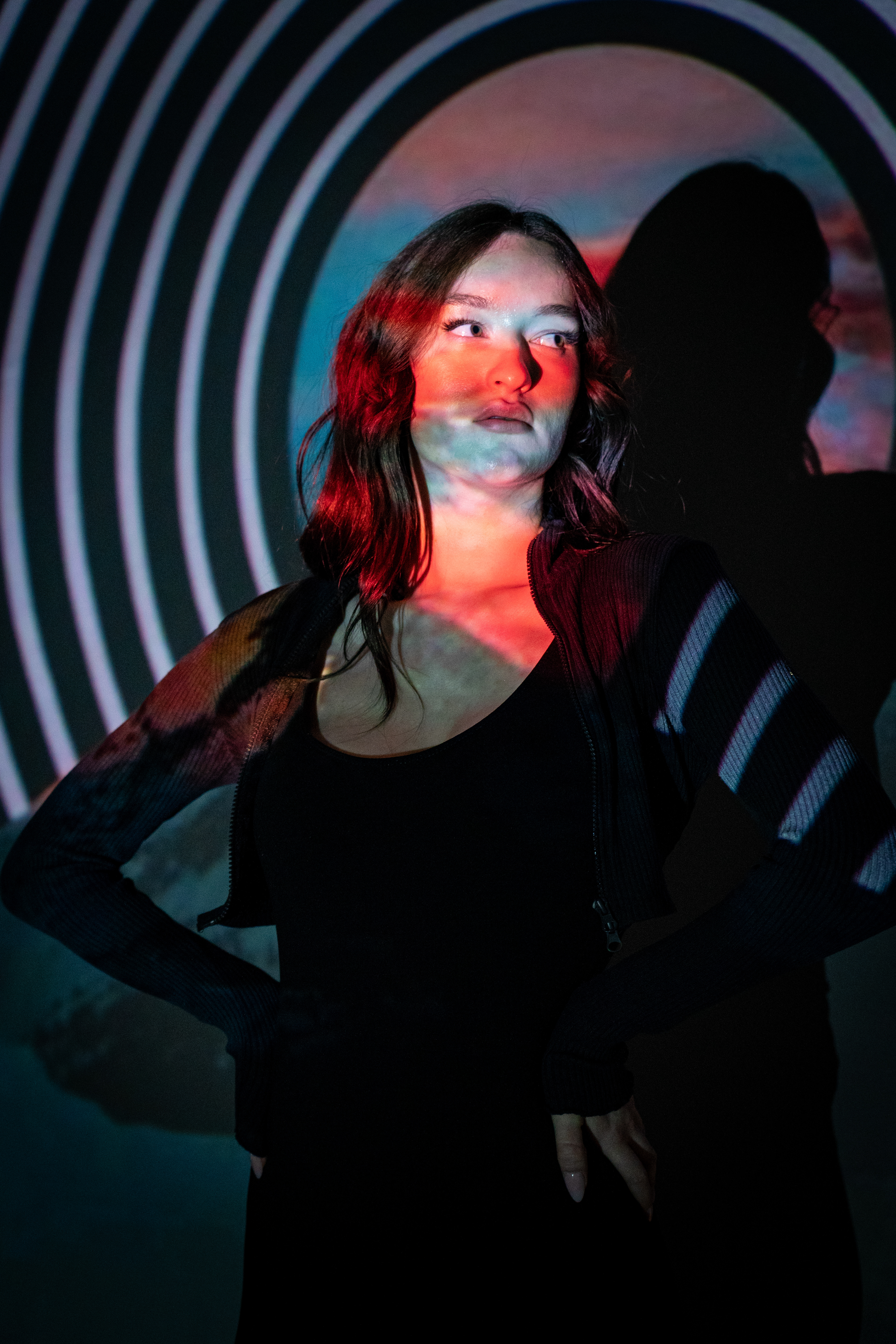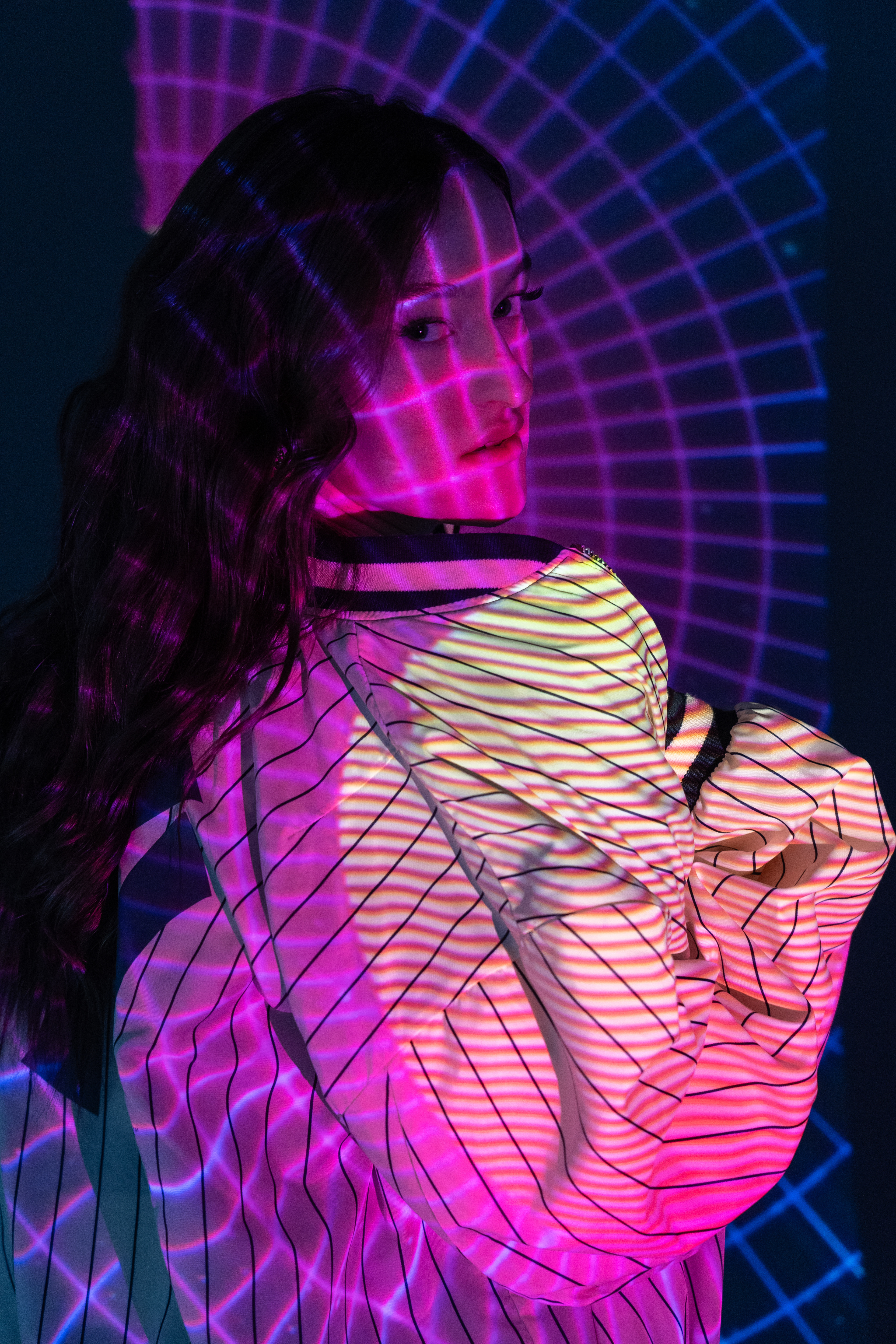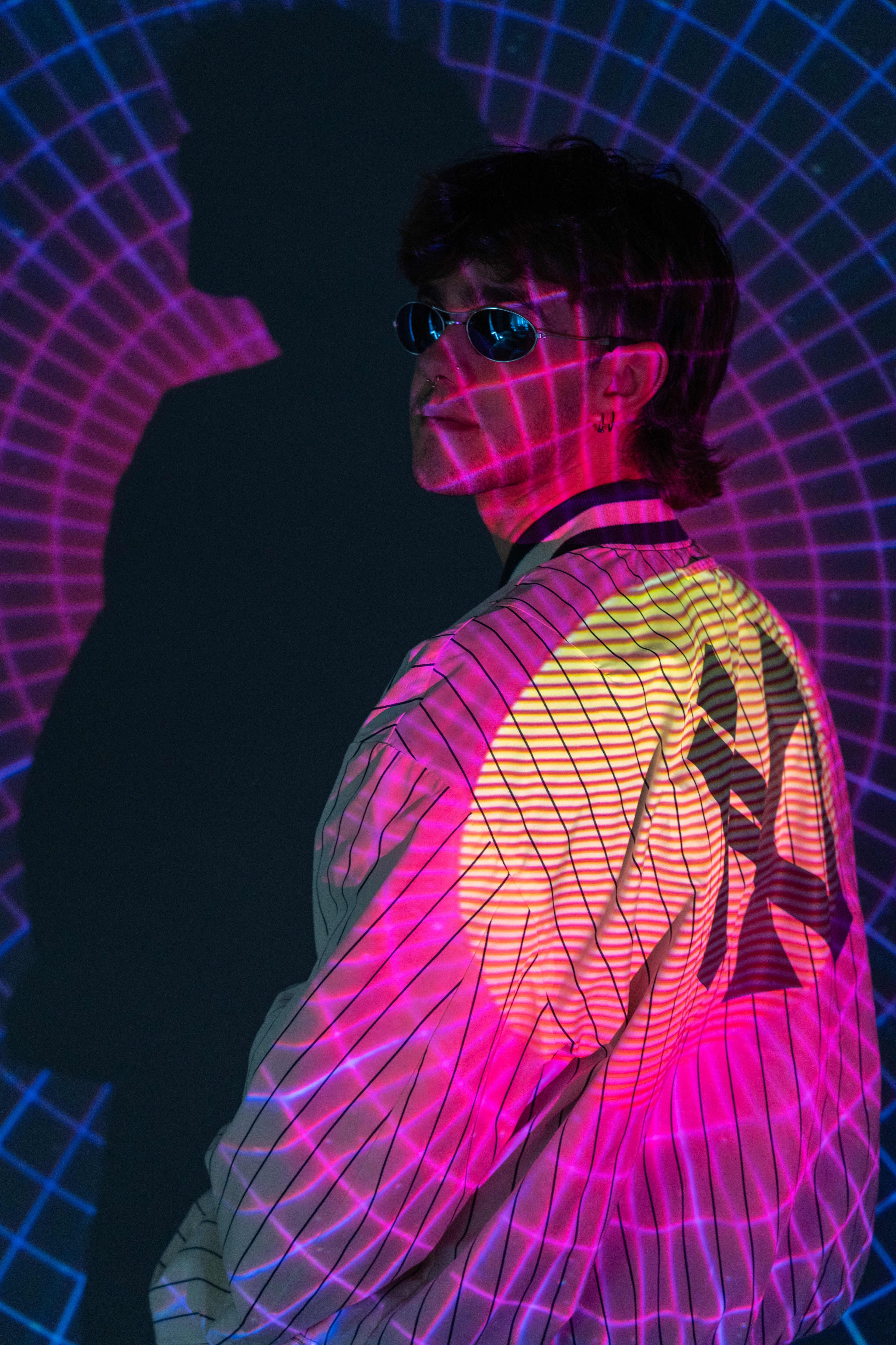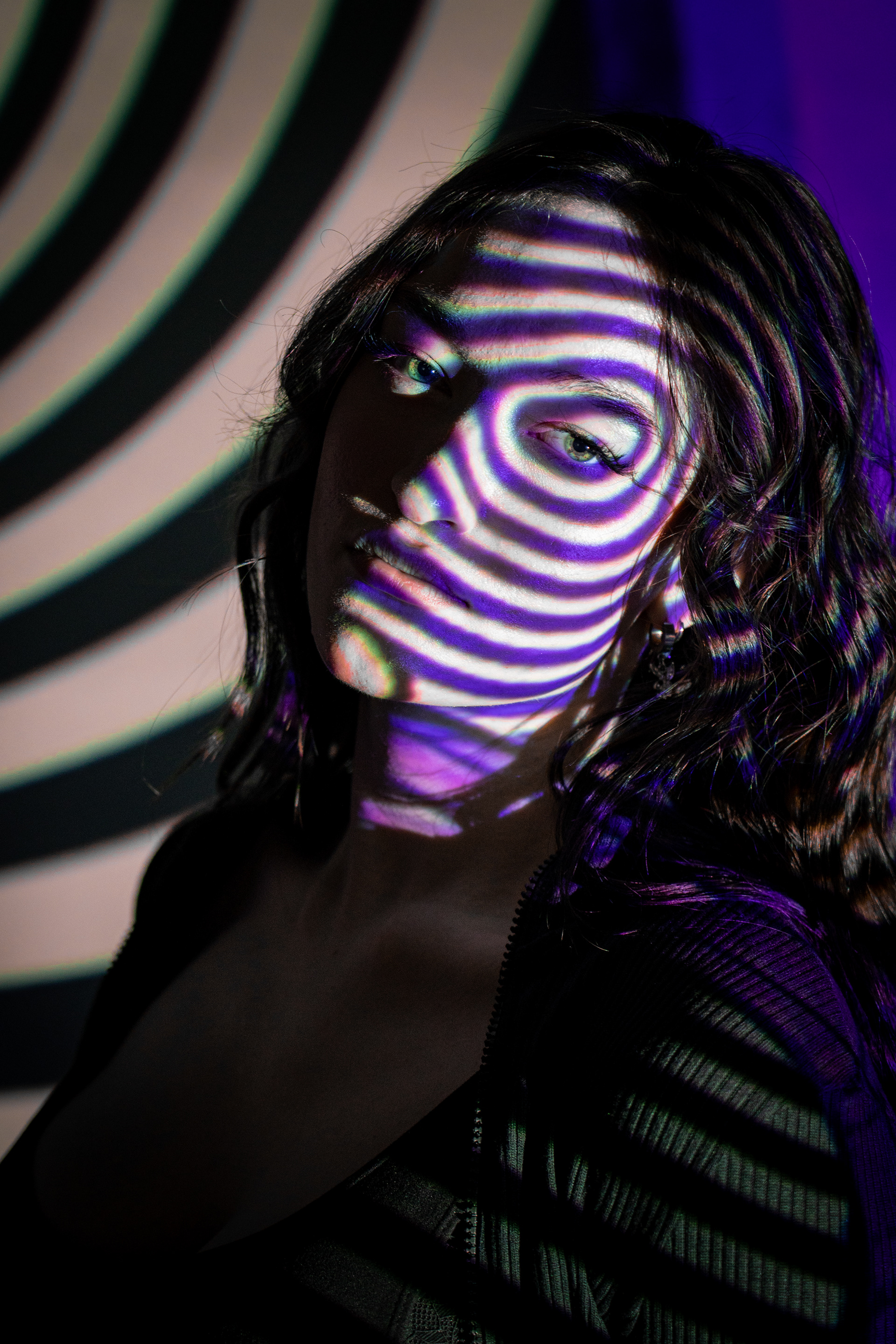 This university project serves as a visual introduction to the evolving boundary between the human form and digital space. My intention was to explore the increasing fusion of humanity and technology through a highly experimental lens. The core concept involved casting vibrant imagery directly onto a subject with a powerful projector to see how digital textures merge with biological contours.